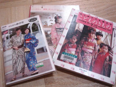 県立図書館には市立にはない本が置いてあるので、ちょっと頑張って行ってみました。左端の型紙はハタチくらいのときに浴衣を作った時のものです。さて子供着物の本を借りたのだから早速取り掛かるか…と思いきや、夏に買ってそのまま放置していたしじら織りの生地がどうしても心に引っかかる。もやもやするのも気持ち悪いので先に作ってしまいました。前から。後ろから。背中心・おくみ・両脇・袖はミシン縫い。縫い目を見せたくないところは手縫い。布幅約110cmを5m買いましたが、4.5mでもよかったかもです。型紙は左端の「かんたんゆかた」をそのまま使用。当時と比べて横に育っているのでちょっと身幅が狭いかも…。さてこんな調子でフワの着物は完成するのでしょうか…?