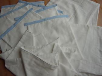 暑かったですね車で外出したら、車中が暑くて汗がタラーッという感じでした。これからドンドン暑くなってきますからね~。水分補給忘れずに、体調管理をしなくては!!昨日&本日の2日間でガーゼ作りをしました大(2枚):両親学級で「沐浴のとき、赤ちゃんのお腹の上にちょっと大きめのガーゼをのせてあげると、赤ちゃんは安心するんですよ♪」と教えてもらったので。小(4枚):沐浴時に利用。小(青のふちどり→6枚):よだれやミルクのおこぼれをふくのにいいかな~と思い。。 ガーゼ生地を2メートル購入してきて、これで使い切りました。けっこう作れた!あと、タオル生地を購入してきたので、もう少し作っておこうかと~思っています。ガーゼ生地も「白」だけではなく、ブルーやイエローも買ってくればよかったと、今になっては思うけど・・もうガーゼはじゅ~ぶんかな??と思いますね。他のモノを作ることに神経を集中させなくては生地の端をチクチクとミシンで縫うだけなのに、本当に大変!大騒ぎもう少しマジメに『家庭科』の授業を受けておけばよかった(←いつの話??)昔々・・のことで、忘れちゃいましたよ(笑)まさか~赤ちゃんグッズを手作りしよう!なんて思うなんてねぇ。。人って変わるものですね~と自分で思っていますはいっ。