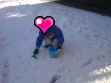 起きたら雪~。息子大喜び♪朝からスキーウェアを着こんで雪だるま作って遊んでました!!