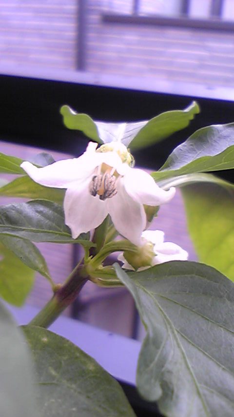 台風は徐々に北上してきましたね~過ぎ去った地域の皆さんのところは大丈夫でしたか?大きな被害がなかったことをお祈りしています今日は待ちに待った金曜日22日(月)もお休みに・・・そして台風のお陰で1号の部活も2号のお稽古事もお休みに・・・気分は瞬時に、だっらぁ~ん~夕食後は、家族でダイエット番組にかじりつき・・・見ているうちに、俄然やる気がメラメラ~っと燃え上がりダイエット再開する気になってきましたよぉ皆さんは、どんなダイエットに挑戦してますか?私は根気がないので、我慢不要なダイエットがお好み・・・7月に予定されていた人間ドックに備え、まずは6月から「朝だけしょうが紅茶ダイエット」に挑戦!朝食だけを「しょうが紅茶」にして、昼、晩は何を食べても飲んでもOKという我慢不要な簡単ダイエット冷え性も治るし、一石二鳥と思い、即スタート!1ヶ月で3kgほど減ったのですが、その後、ちょっと停滞・・・そして!暑い夏に朝食ナシ(しょうが紅茶は飲みますが)、Hotなしょうが紅茶で汗だくだく・・・2ヶ月でダウンしてしまいました・・・9月になり涼しくなってきたので、また再開したのですが、あまり効果なし・・・そんな時、巷で話題になっている「朝バナナダイエット」の効果を友人から聞き、興味津々早速、本を購入、翌日にはバナナも購入!今週から開始・・・したものの、なんだか胃の調子が悪くなり(バナナとは関係ないようですが)中断・・・なかなか思うように進まず、やる気もなくなってきていたのですが、今日のTV番組に感化され、俄然やる気になっちゃいましたダンナも子供達も「朝はバナナだね!」と・・・^^; (似たものFamilyです)4人でやるとなるとバナナの購入が毎日大変になりそうですが、頑張りま~す!(宣言しちゃった^^;)今日の写真は、ホワイトピーマンのお花です収穫後そのまま放っておいたら、こんなお花が咲いてびっくりです!この後、タネも取れるといいなぁ~台風一過の週末、どうぞ楽しくお過ごしくださいね~