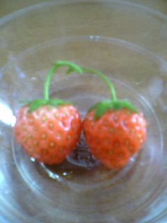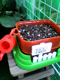 今日は日差しは強かったけど、さわやかな気持ちいい~1日でしたねパパさんは、みんなが寝ている間に釣りにおでかけ残された女の子3姉妹(?!)は、のんびりとした朝を迎えました。娘3号は、起きてくるとすぐにベランダへ。。。「ママ~、まだ芽がでてこないよぉ~」昨日までは娘1号(私よん♪)も「大丈夫だろうか・・・?」と心配してたんだけど、発芽に時間がかかることがわかり、一安心「大丈夫!もうすぐでてくるよ~」と余裕のお答え (○○さん、ありがとう!)そして、娘2号が学校から持ち帰ったイチゴちゃんたち♪見て~!実も少し大きくなって、色づいてきたの 収穫まであと何日かな~?楽しみ~っ前回は収穫直前にアリや鳥達に食べられてしまったんで、今回は上からネットをかけて慎重にっ