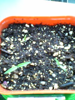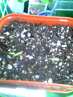 出ました~~っ!!! 「ママ~!トマトちゃんの芽が出てるぅ~~!!」 娘3号の叫びでの目覚め。4つのうち2つでしたが、ちゃ~んと芽が出てきました^^v (小さいけど見えますか?)応援してくださった方、ありがとうございました~。これで一安心今度は鳥さんたちに狙われないように頑張ります我が家のトマトちゃん、イチゴちゃんたちは、ベランダにいるんだけど、こんなお家をつくってみました^^vホームセンターや100均ショップにあるキッチン用の白いネット(?)を3枚コの字型にとめて囲いにし、上からネットをかぶせ強風でも飛ばないよう、フックを数箇所にかけてます(左右のパネルは自由に角度が変えられるので結構便利です!)そして・・・想定外でしたが、昨日、パパが釣ってきたもこんな感じで・・・^^;(トマトちゃん達のお家の屋根の上です^^;)美味しい干物になりました