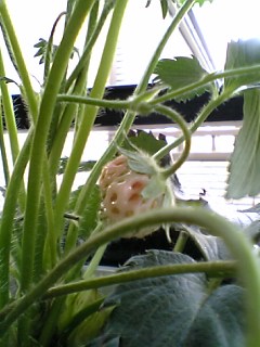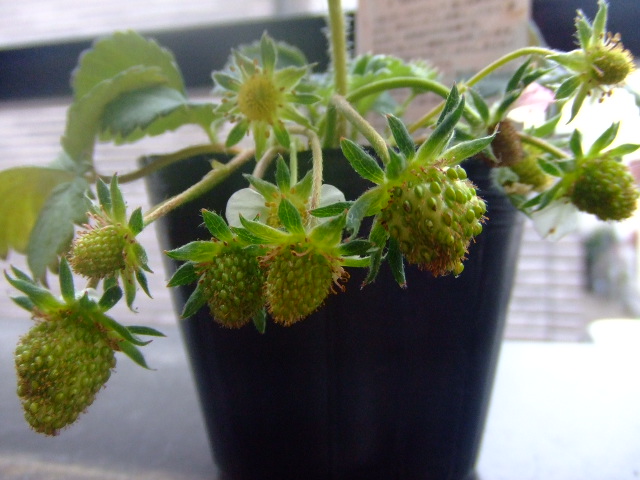 我が家のイチゴたち♪いつになったら色づくのやら・・・ のんびりと、待ってますよぉ~こんな風に変身できる日を・・・