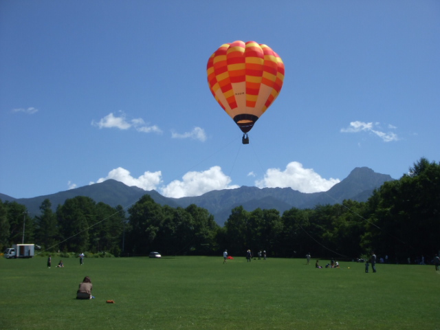 だいぶ涼しくなり、夜もゆっくり眠れるようになりましたね~仕事から帰宅する頃には、もうスズムシの大合唱♪「もう秋だぁ~」と思うと、なんだか淋しい気もする・・・夏の思い出なんて書いてる場合じゃないのかも・・・^^;毎日アップするつもりが、最後の最後で手元が狂い、さようなら~やってしまいました!それも2日連続・・・今日は、最後まで頑張るぞ~・・・ということで、今日は八ヶ岳と山中湖&富士山のご紹介です。最初は八ヶ岳の牧場。熱気球に乗ってみました~お天気も良かったので、八ヶ岳が綺麗に見え、とても気持ちよかったですよ牧場の濃厚でおいしいアイスクリームを食べて、次は山中湖へ今年は上の娘の部活の予定が早めに掴めず、夏休みの旅行も直前の計画とそのときのお天気と気分で・・・山中湖では国際音楽祭というイベントが開催されていたので、アウトドアの後には、しっとりと音楽を聴いてまいりました3日間連続で、海外からの音楽家を集めた演奏会。小さな会場で、それも一番前で見れた(聴けた?)のは最高クラシックの音楽会というよりはライブのような迫力で、感動いっぱいでしたクラシックだけでなく、お琴と尺八、中国の二胡などのコラボで2時間半があっという間。そんなステキな演奏を、なんと!コオロギも聴きにきていたんですよ・・・演奏中、下の娘が指をさすほうを見ると、聴衆フロアに1匹のコオロギが!立ち止まって聴いてみたり、みんなの足元をウロウロしてみたり・・・みんな、「踏んではいけない!」って、音楽を聴きながらも必死にコオロギの行方を・・・自然の中での音楽会は、心から安らげましたそして、こちらは山中湖と富士山やっぱり富士山は何度見てもいいですよね~来年は、登ってみたいなとも密かに思ってます・・・そして、信州最後は、忍野八海。富士山の雪解け水が流れているところで、日本の田舎って感じがお気に入りです!もちろん、雪解け水も美味しかったですよ~今年は、日本の田舎を体感し200%癒された夏休みでしたオマケですが・・・こんな田んぼもありました^^;