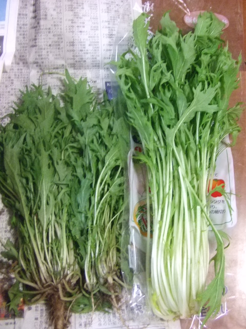 またまた・・・お久しぶりです前回、あたたかいコメントを下さった方々、ありがとうございました10月は、会社で尊敬していた方が転職されるという、ちょっとショックな出来事も重なり、凹み月間というつきまわりだったようです・・・でも!もう大丈夫ずっと凹んでばっかりいるのも、もったいないですからね・・・元気に頑張ってますので、これからもよろしくお願いします♪今日は、娘が学校で育てた野菜を収穫して持ち帰ってきたので、ご紹介させていただきますね。まずは、水菜右はスーパーで購入したもの。左が娘が学校でタネから作ったもの。丈は市販の水菜より短いけど、色も味も濃厚で美味しかったです♪お次は、バジルフレッシュバジルでシーフードパスタをいただいた後は、娘と一緒にペーストを作ってみました♪キッチンはとってもいい香で包まれています。そして、収穫ではないのですが、いまだに頑張ってるミニトマト夏の間、ベランダで頑張って沢山の実をつけてくれたミニトマトちゃん。寒くなってきたというのに、次から次に葉っぱが出て、花が咲き、実までつけてくれました赤く色づいてくれればいいなぁ~