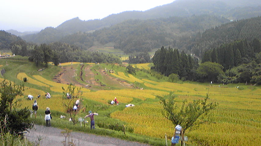 大きな台風がゆっくりと動いてますが、皆さんのところは大丈夫ですか?大きな被害がないことをお祈りしています 9月初旬の出来事ですが、疲れ気味~と言いながらも稲刈りに行ってきました~!今年5月に植えた稲は立派に育ち、黄金色の粒をたわわに実らせてくれました 稲を刈る→束ねるという作業は、本来は1人でやるとのこと。でも我々素人にはムリムリ・・・田舎のおじいちゃん&おばあちゃんパワーはスゴイです稲を刈るのは意外と簡単だったけど、この「束ねる」という作業は難しかったぁ~少しでもゆるいと干してる間にスルスルっと抜けてしまうので、一番大切な工程らしいのです。 私は、腱鞘炎で力が入らず刈り専門その分、1号が頑張ってくれましたみんなに、「ホープ・ダルビッシュ!」ともてはやされ、ハリキリGirlに・・・もうすぐ作業終了という時に、地元のオジサンからダメ出しをいただくというハプニングもありましたが、無事、稲刈り終了~~いい汗かきました オフィスでの仕事より、こんな生活もいいな~と思う今日この頃ですそれに、最近は、食の安全が怪しいですからね~自給自足の生活に憧れちゃったりします先週末には脱穀作業が終わり、10月には収穫祭一粒、一粒大切なお米を味わう日が楽しみです