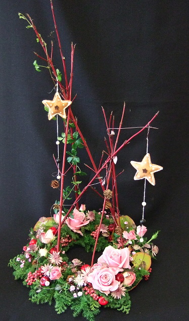 後、1週間弱で「クリスマス」ですね。急に寒くなり、雪も降ってくれて早く山に行きたくって「そわそわ。。。」しかし、後少し御仕事を頑張らなくっては。。。今年はやはりピンクを基調にクリスマスアレンジメントのレッスンをしました。さぁ~って後は「お正月のアレンジメント」だいたいのデザインはできていますので後はお花屋さんと花材の相談です年末はお花が高くなるのでちょっと大変です。。。お花屋さんのご協力なくしてはできないレッスンです「お花屋さん、よろしくおねがしまぁ~ス」