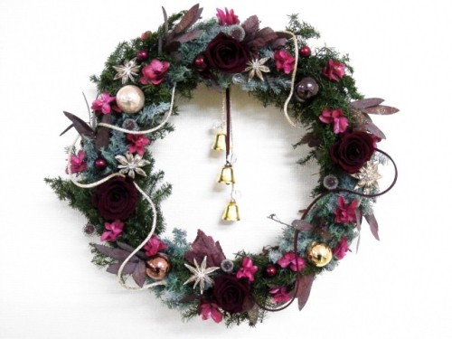 毎年11月になると時が経つのが加速する気がする。。。先へ先へと気持ちが行くからだと思うけど。。。で、この位の日にちになると、クリスマス、お正月のデザインが決まり、だいたいの材料が揃い出すから、すこ〜し気持に余裕が出て来ます。あと1ヶ月でクリスマス。。。今年のリースはこんな感じ他の年のリースは「withPhoto」にアップしてますここ数年いろんなところのディスプレイが「クリスマス」になるのが早すぎます。。。「ハロウイン」終ったら即「クリスマス」ってまぁ、購買意欲をかき立てたいのでしょうが。。。せっかく「秋」と言う良い季節が感じられる時なのに、なんだかもったいないなぁ〜。。。と思います。本来、「クリスマス」の4週間前の日曜日 から、祝うのが本当。「アドベントリース」「アレンジ」に4本のろうそくをたて、毎週一本ずつに火を灯し「クリスマス」までのアドベントを過ごす。だから、クリスマスのアレンジなどにろうそくを使用する場合は4本になってます。本来は来週あたりから、クリスマスのリースを飾ったりアレンジを飾ったりするのがいいのでしょうね。。。まぁ、12/26 の夜中には「お正月」ディスプレイに変わる日本ではそんな事関係ないのでしょうが。。。私も以前、デパートのディスプレイの御仕事をやっていた時には12/26の夜中にクリスマス装飾を撤去しせっせとお正月のお花を生けてました(^_^;Aさぁ、あと1ヶ月、走りますかね。。。息切れしません様に。。。