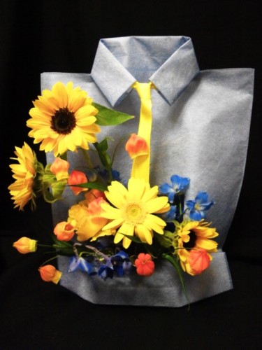 17日は「父の日」です。「母の日」に比べるとかなり、盛り上がりに欠けている気がします。デパートでは水色の包装に黄色のリボンをかけ、父の日ラッピングをする事が多いと思います。なぜ、黄色のリボンか。。。--------------父の日の発祥の地はアメリカなのですが、このアメリカで「黄色いリボン」は、「愛する人の戦場での無事を祈り帰還を願う」シンボルでした。そして、「黄色」「黄色いリボン」は世界各国の人々に「命にかかわる大切な色」とし「愛と信頼と尊敬」を表す色として広がっていったのです。--------------こうして、「父親を尊敬し、称え祝う日」である父の日のシンボルは「愛と信頼と尊敬」を表す「黄色(のリボン)」になったそうです。 父の日のプレゼントにはぜひ黄色を取り入れたラッピングをされるといいと思います。 そして、お教室では こんなアレンジ作りました。