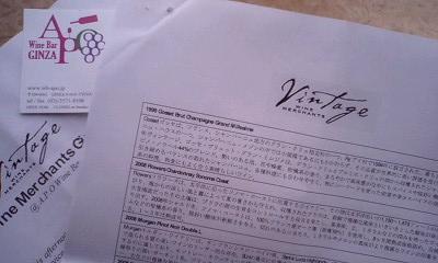 先週の日曜日にワインのテースティングに行って来ました。カリフォルニアワインと言うと安くて気軽に呑めるけどあんまり美味しくないか「オーパスワン」の様なとっても高価なワイン。と言う印象が強かったので、あまり期待はしていませんでした。でも、ワインの事がとっても詳しく、私のワインの先生でもある友人と呑めるのが楽しみで、このかた、ほんとに詳しくってワインをのむときに彼と呑むのと呑まないのとは楽しみが半減するくらいの方。場所は銀座の「A.P.O」というワインバー。とっても雰囲気がいいお店でちょっと楽しみが。。。テーステイングする12本のワインのリストと解説。この「Vintage Wine Merchants」と言うワインショップに勤めている、日本人女性からのご紹介。まずは、「ゴッセ」というシャンパンから始まりましたがこれがびっくりするくらい美味しかった。これはフランスシャンパーニュのものです。そして、白。赤と続きます。ちょっとびっくりするくらい美味しいワインが次々と。。。それに出て来るつまみが何とも美味テーステイングでここまでしっかりと食べ物が食べられる事はあまりないとおもいます美味しいワインとおいしいおつまみと楽しい会話。最高です。これはラストから2つ目 2006/Pahimeyer そして最後のワインが2006/Bond Quellaというワインでした。こちらハーランエステートの兄弟ブランドだそうで、ってこの時はあまり良く分かってなかったのですが、すごいワイナリーらしく。。。なんとま~~とびっくり。こういってはアメリカのワインに申し訳ないのですがこんなに美味しいワインがあるのですね~~。。。って思いました。私はボルドーのむずかし~ワインよりも少し華やかさのあるワインの方が好みなのですっかり、カリフォルニアワインが好きになってしまいました。そして、昨夜、頂き物の鹿さんがあったのでワインを飲もうと言うことになり、これもまた頂き物ですがちょうどカリフォルニアワインがあったので「これでいいっか!」と、ダンナ。私もいいじゃない~~とほとんど見もしないで。。。呑んだとたんに二人で顔をみあわせ「。。。。。!」「これ、もしかしてすっごく良いワインじゃ,,,」そう、なんとこの前のテーステイングの最後に呑んだワインと近いハーランのセカンドだったのです。2006/MEIDENと、なんとも贅沢なオチのついた数日でした。。。