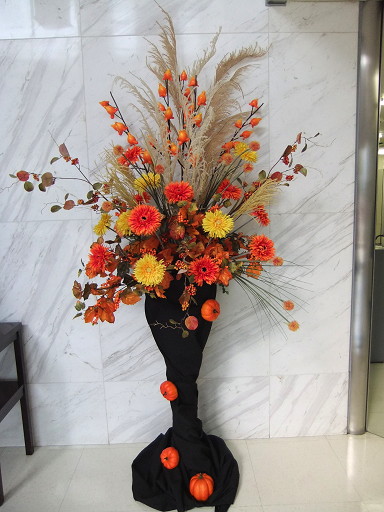 最近、ツイッターでブツブツ言ってるせいかブログ更新率がどうも低くなっている。。。まぁ、もともと、あんまりマメではなかったのですが。。。今日は木場までアートのお花をいけ替えに行って来ました。五十日(ごとおび)だったから首都高が混むと思って覚悟してたのですがぜんぜん。。。すい~っと行ってすい~っと帰って来れましたこういう誤算は嬉しいですね。。。で、いけたのはこれ、ちょっとハロウインを意識しました。他のいけ込みの写真は「企業のエントランス~春夏秋冬~」にアップしてあります。ちなみにハロウインは10/31 です。今年は暑い日が長かったせいか、「あっ!」と思ったら11月になってるんじゃないかと思います。。。怖い怖い。。。クリスマスのデザインやらお正月のデザインをつめていない。。。大丈夫だろうか。。。ちょっと真剣に頭を年末バージョンに切り替えなければ。。。