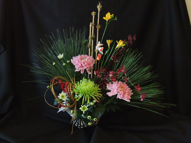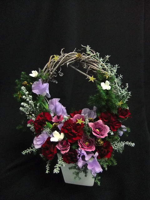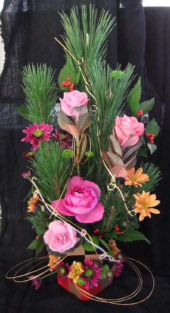 あと10日でクリスマス今年は暑い時期が長かったせいか「え、もう10月」「え、もう11月」と言っているうちに12月も中旬を過ぎてしまった気がします。今年の「クリスマスアレンジメント」はいや~ギリギリまで試行錯誤しましたです。。。アウトラインは早くから決まったのですが細かいところがどうも自分のナカで納得がゆかない。。。悩んだ結果がこのようなデザインになりました。お教室によって、お花の種類が違いますがだいたいはこのような仕上がりになるかな。。。生徒さんはとっても喜んで下さった様なので「ホっ。。。」最後はお正月アレンジメントです。あと少し がんばろっと!