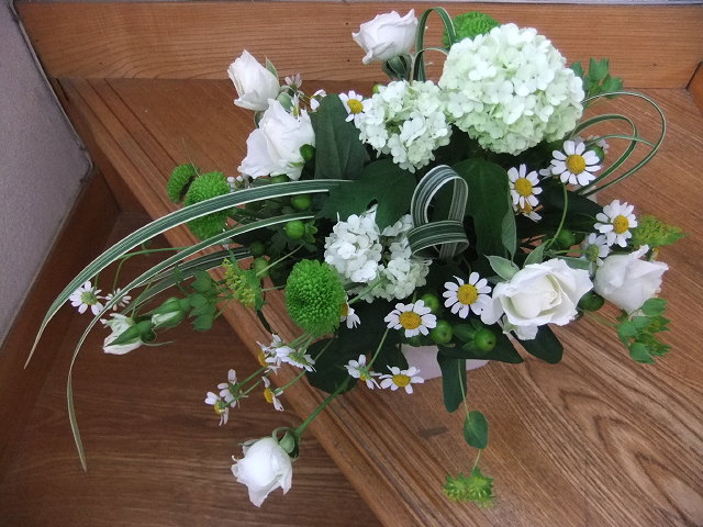 今日は暑い!!朝は曇っていて涼しかったのに太陽がでるにつれ、気温が上がっている。。。昨日は寒かったのに今日は暑い。こう気温があがったり下がったりすると体調管理が大変です。。。もう、梅雨なのかな。。。節電で電車のなかは、蒸し暑いし。。。この時期「グリーンアレンジ」をレッスンでやります。ちょっとは清々しいきもちになりますように。。。グリーンアレンジメントは人気があります。綺麗ですものね。