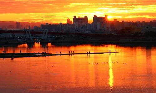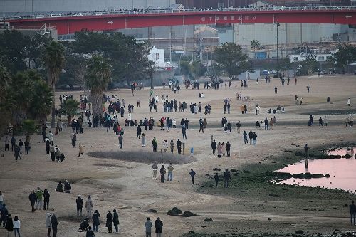 西宮大橋にも人や車が渋滞初日の出が上がり、数分後には雲が出てきて見えなくなりました