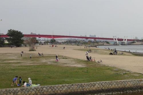 外出自粛とはいえ、良いお天気なので浜は賑わっています