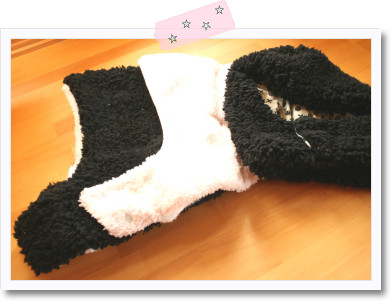 随分前に作っていたのですが、このところめっきり寒くなったので登場機会が続出中フード付ネックウォーマーです♪ヤフオクでこの型紙を見つけて即買でした♪かわいーっちょっと撮影時が天気悪くって微妙な色合いですが…真ん中は薄いピンクのファーです♪黒のもこもこファーはウチのコとおそろいで甥っ子の分も。娘の分はちょっと寒い時用のピンクと物凄く寒い時の黒もこもこVERの2つ(笑)これまたhibi+さんコートと一緒で中表にして裏返すので厚いファーだと、ほんとーにもこもこになりましたで、でも…この写真だと可愛さが伝わらないですよね(笑)ちゃんと可愛く見える写真の撮り方ってないのかなぁ…??と毎回おもいつつパシャリしてますで…やっぱり着画が一番かな?と(笑)ん??これでもわかりにくいかな?(笑)とりあえず娘も気に入ってくれていつもつけてくれるので良かったです♪マフラーだと外れちゃうし、イヤーウォーマーは嫌がってつけてくれないので、ほんとーにこれは重宝ですーフードをかぶらなくってもネックウォーマー部分だけでもじゅーぶん暖かいみたいで結構外を歩いても元気にしてます(笑)