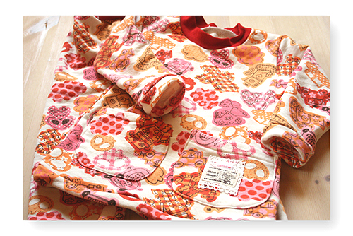 北海道はもう秋も終わりそうな勢いですが…もう1ヶ月前くらいから作ろう♪…と準備してた長袖パジャマがやっとできましたー最初に3着分の布を切りだしたのですが、まずはその中から1着女の子ですが…なぜか車柄(笑)ですが…これが赤だと小さくて可愛いくて全然女の子でも平気なんですよねーっ生地のお店 Le Sucreさんで買った布ですー市販のスモックパジャマの型紙を使ったのですが…時間がなくって襟や裾類はぜーんぶスパンで簡単にしちゃいました…あと2着がんばりますーっ