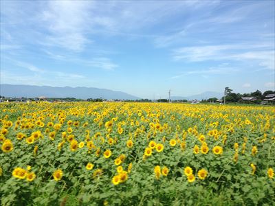 綺麗なひまわり畑に見送られながら~初めての6人家族旅行はスタートしました暑い夏も行列が並ぶ「ほうとう」のお店で昼食をとり湖畔のホテルで一休みした後は亀さんのボートで諏訪湖一周屋上大露天風呂でさっぱり汗を流し広い個室での食事は子供連れには安心いつものように姉に連れまわされる妹諏訪湖の花火大会は別の日ですが・・・この時期毎日ほんの15分打ち上げられます花火の大きな音にあいちゃんは泣き出しました2日目、霧ケ峰ビーナスラインみんなでリフトに乗りました馬篭に立ち寄ったのはお店が閉まる寸前で・・・男性群は車をあちらに回す役目女性群は~カロリー消費目的でひたすら坂道をみんな一緒で~楽しかった旅行・・・無事家路につき、ほっとしました