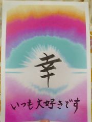 昨日、感情シンガーソングライターのMさんからステキなプレゼントを頂きました♪ 以前彼に太陽の写真を見せた時に、 「これに何か文字を書きたい」 と言ってたんです。 まさか本当にすぐに書いて見せてもらえるとは。 あまりにもステキで感激しました♪ (入っていた袋にも言葉が) 写真を見て、次から次へと言葉が出てきてしょうがなかったとのことです。 もっと他の写真を見せて、いろんな言葉を書いてもらいたいなあ。 この方、携帯もパソコンも持っていないので、すぐにたくさん写真を見せられないのが残念です。 とても心がキレイな人で(顔もかっこいい)、私のこともたくさん励ましてくれるし、 ほんとステキな人と出会えてよかった☆