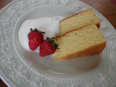 ケーキを焼くのは久しぶり~デコレーションなしでスポンジをカットしてクリームをつけて頂くことにしました♪