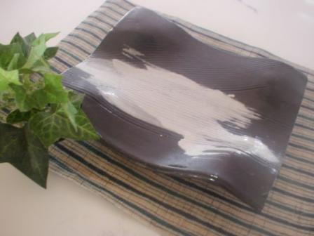 以前作ったお皿です^^土の色がそのままなので白化粧をしてみました。かなり和っぽいお皿なので和菓子を頂くときに使っています*^-^*