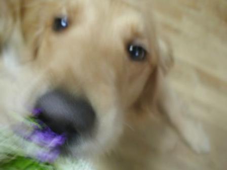 いつもおすましした顔ばかりアップしてるのでこんな顔もしますぅ~ということで^^散歩の時に摘んだ花をリースにしてアリスの頭に乗せて写真を撮ろうと思ったら、くんくん匂いをかいで結局頭に乗せて撮ることが出来なかった(>_