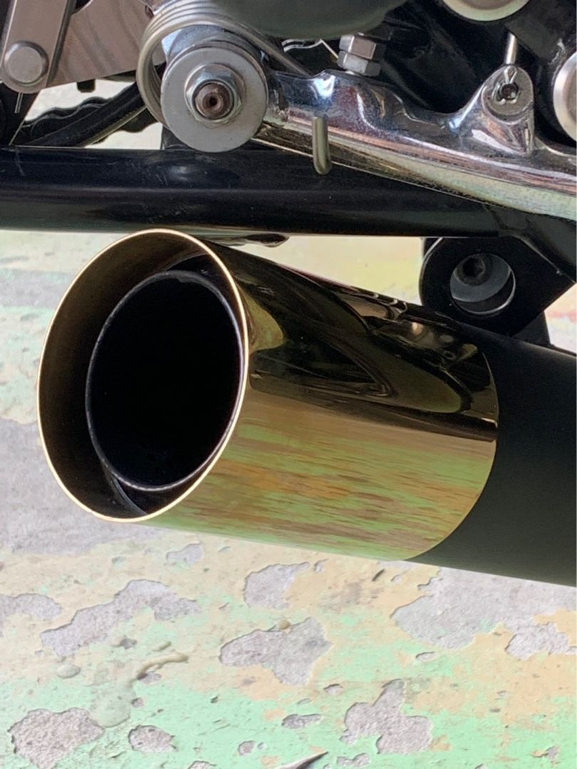いまから載せる写真は かなりまばゆいので、 目がムスカみたいになったらごめんなさい。 では いきますよ? ワン ツー… スリー! ピカ〜っっ 目…目がぁっ。・゜・(ノД`)・゜・。 こちらは、 一枚板を 曲げて作ったワンオフ? の、マフラーカバーです☺️ さすがゴットハンド! ではでは、 また明日〜⤴️⤴️