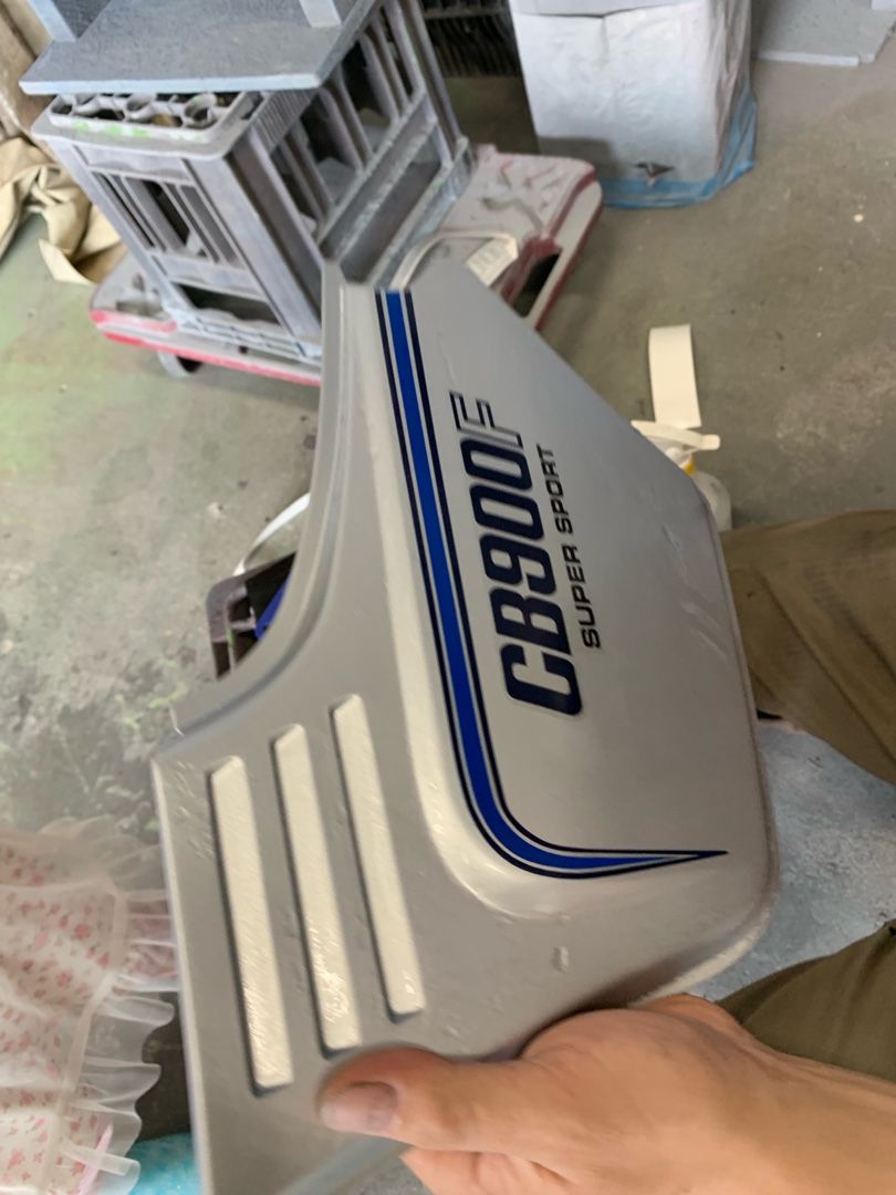 かようは、 サイドカバーを ベース塗装してから、 ステッカーを貼り、 クリアを塗るところです😊🎶 CBのパーツを多く取り扱っている 「リモーション」というお店で、 ステッカーゲット💕