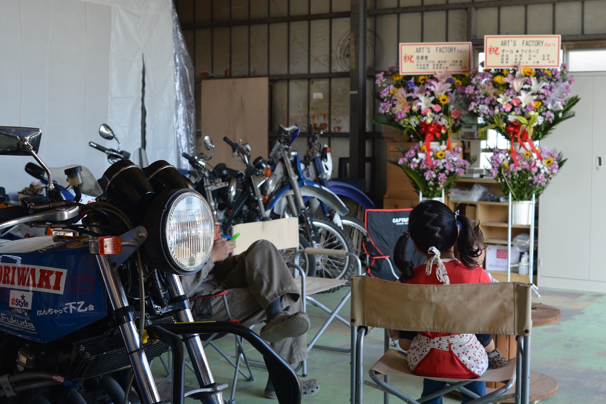 本日は 絶好のバイク日和 そして、 お祭り日和 じゃなかった 晴れの門出にふさわしいぴーかん晴れですっ さすが、晴れ女キムちゃん ふくちゃんのお母さんお手製のお赤飯(限定食ですよ~) お店のネーム入りステッカーに名刺に粗品のタオルとお茶にコーヒーをご用意しております そんなわけで、バイクに乗ったついでにぜひぜひお立ち寄りくださいねっ 首を洗って じゃなくて、首を長くしてお待ちしてま~す ・・・ART'S FACTORY・・・住所:群馬県高崎市島野町1-21TEL/FAX:027-329-6302業種:鈑金塗装事業内容:自動車・バイク・ボート・自転車などの鈑金塗装・オートバイのカスタム・レストア・鈑金塗装・車検・修理・部品製作などなんでもお受けいたします。.