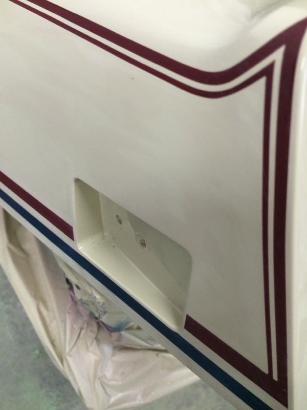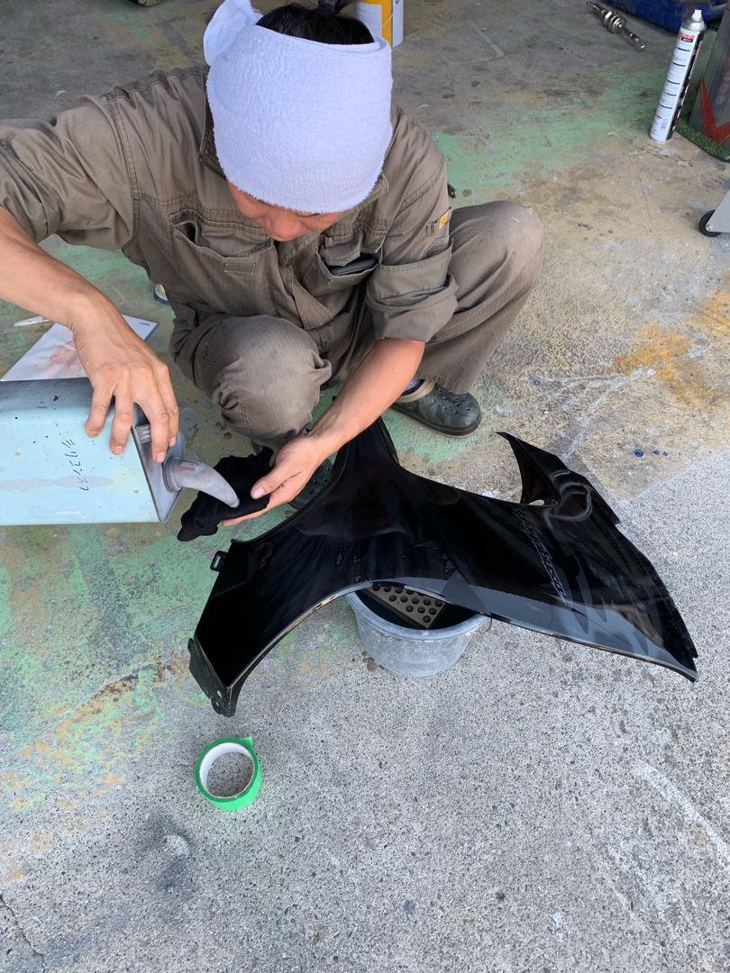 高崎、 すでに35度超えの アチーチーアーチー で、ございます💦 隼の、外装に傷がついたものを 塗装修理中😊❤️ これ。 キズ。 チチンプイプイやでー 頑張れ旦那サマ♥️