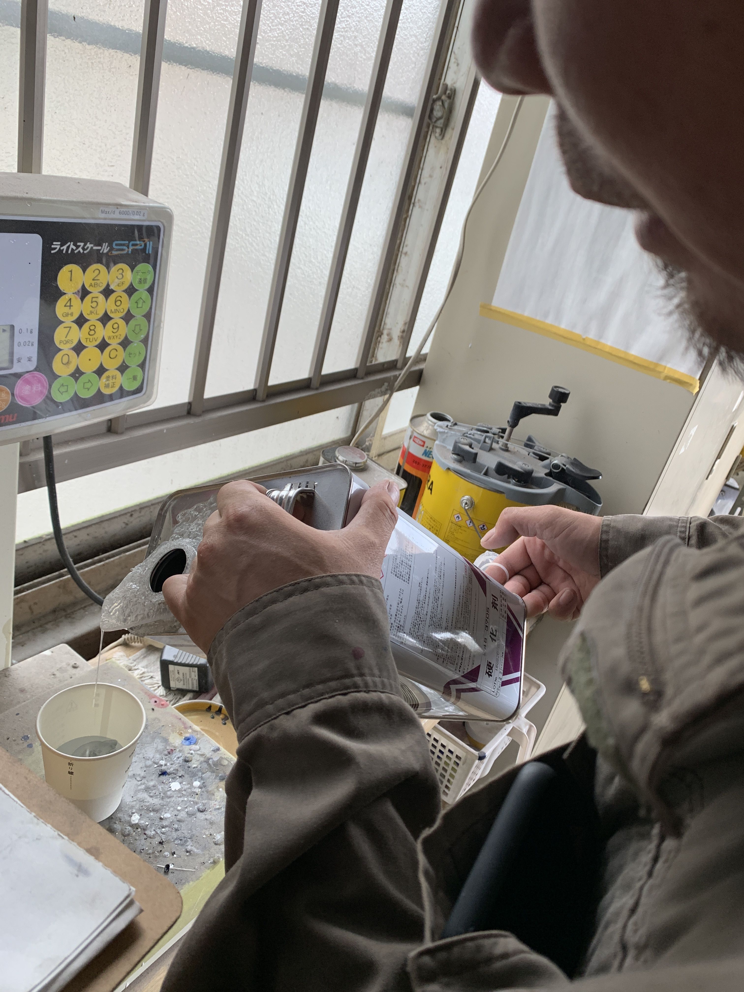 こんにちわ! 雨ですが、 アーツファクトリー、 今日も元気に営業しております🎶 こちらは調色中ー💁♀️