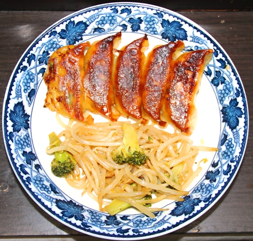 [雪松餃子]の冷凍(36ヶ入)を買って来て、もやし+ブロッコリーで晩飯3人前作った。