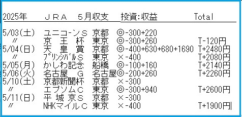 女房元気で留守がいい(笑/5月11日までの競馬結果