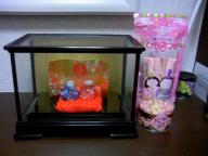 うちはお雛さま買ってません。なぜならできれば子供は2人欲しいと思ってるので、もし次の子が女の子なら色んな考え方があるのかもしれませんが私は、お姉さんの為に買ったお雛さまではかわいそうな気がするので。男の子だったとしても同じ大きさのものを買ってあげたいし。そう話をしたものの、去年義両親はなかなか納得してくれなくて見に行くだけでもって言うので行ってきました。そこでお店の人にそう話をするとお雛様は一人につき一つだそうでそれはとてもじゃないけど置く場所もないしねということで、娘にはちょっとかわいそうなのかもしれないけど家族みんな揃ってから一緒に選びにいこうね去年義父が買ってくれた小さなお雛様。結構気に入ってて玄関に飾ってます。でももう片付けなきゃお嫁にいきおくれたら大変だひな菓子食べてますこんな娘でも誰かもらってくれる日がくるのかな今年は忙しくて何もできなかったけど、来年は娘もひな祭りをわかってきそうだし手抜きできなそうだな