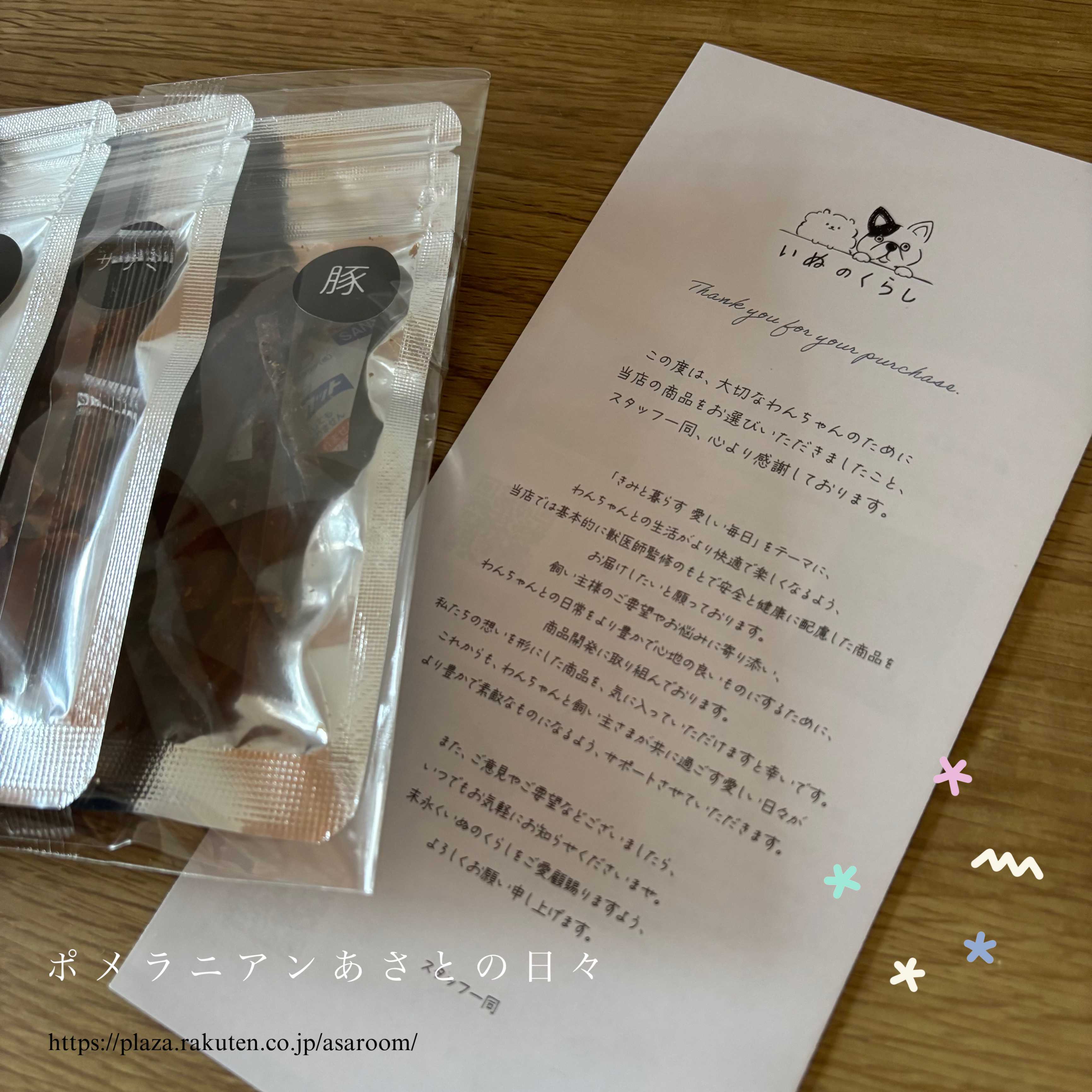 こんにちは今日は愛犬あさちゃんに買ってみたおやつについて最後までお付き合いいただけるとうれしいです平日に私がパートすることになってお留守番の時間が増えたあさちゃんありがたいことに当初はお留守番時にクゥンと小さくなき続けてたのが今は落ち着いて待ってくれるようになりました↑お留守番カメラの映像🎥家を出る前と、帰ってすぐは「ありがとう」という意味でおやつをあげます食いしん坊のあさちゃんには食べ物が一番のご褒美🍗あげるおやつはできるだけ身体に優しいおやつだといいなぁと思い始めて「いぬのくらし」というお店で見つけた無添加おやつを試しに買ってみることにしました5種類。ひとつ10gのお試しセット☆私は鶏、ササミ、豚、サケ、鯵の5種類を選びました1袋こんな量が入ってました中型・大型犬には物足りない量だと思いますけど小型犬のあさちゃんには十分な量ジッパー付きなのもうれしいさっそく実食・・・このあとすごい勢いで食べましたとさあさちゃんは好き嫌いないのでどんな食材でも喜んで食べるんだけど飼い主的にはやわらかい魚系おやつサケと鯵があげやすかったですあと匂いも美味しそうな匂いがしたまたなくなったらこのセット頼みたいな匂いがキツイかなぁとずっと敬遠してた鹿やイノシシも一度頼んでみようかな...10gという少量で注文できるのはありがたいですネ〇 〇 〇 〇 〇3連休明けの昨日散らかってる室内を見渡すとちょこんとあさちゃんかっわいい~~(親バカ)連日の暑さで身体がどことなく毎日だるいこの頃だけどあさちゃんの可愛さに元気もらってます次回のブログはまたあさちゃんを撮りためた写真を載せることにします笑#犬との暮らし今日も読んでいただきありがとうございます最後にあさちゃんの頭をぽちっと応援クイックお願いします♩↓↓にほんブログ村みなさまのクイックが励みになりますブログで紹介した商品まとめてます覗いてみてください↓↓Instagram(@pomeasaroom)↓↓ こちらもフォローいただけるとうれしいです