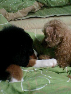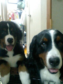 さくらとちびチャンの臨戦態勢です今にも火蓋が落とされそうです!!・・・な~んちゃって名前が決まりませ~んいろいろ みんな いいたいこと言ってくれちゃって娘は和風の名前が言いというんですが・・・お楽しみに~