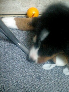 わんぱくになってきて椅子に座っているとかけて来たついでに膝に飛び込んで来てビックリしました! 前に電池で動くボールを買ってきたんですが他の子たちはだれも興味を示さなかったんだけど、臣くんがとっても遊んでくれるのでよかったです! 写真は小さいお姉さんの膝でひっくり返されている臣くんです!