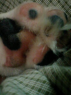 今日は木俣さんで2回目のワクチンを打ってきました。ビスケットをもらって喜んでいるすきに打たれました。ちょっとビクッとしてましたが何とかすみました。よかったね~体重は9,25キログラムでした。フェラリアの薬ももらってきてジャーキータイプなのでもう嬉しくて嬉しくてこんなに美味しいの食べたこと無いよ~って言ってるようでしたもうちょっと太ってもいいって言われたの・・・1日3回ご飯を食べているのですが時々仕事してると忘れたりするから・・・・臣・・・ゴメンね~ローラと臣の肉球です使用前・使用後?な~んちゃって