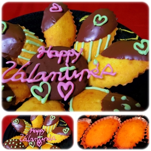初めてマドレーヌを作りました。凄い簡単だったなぁ。しかも美味しく出来ました!ただねぇ・・・バレンタインの綴りは間違えてるし「t」の横棒も忘れて色が違う。チョコが足りなくて「Day」もない。ま、美味けりゃいいね。