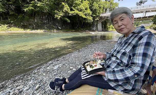 せせらぎの音を聞きながらの弁当は旨い!