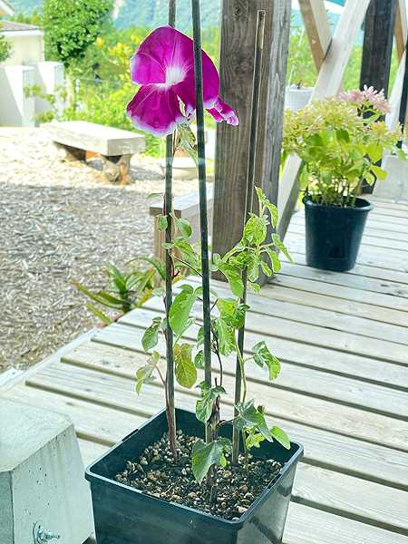 屋内で楽しむ盆栽みたいなアサガオかな。