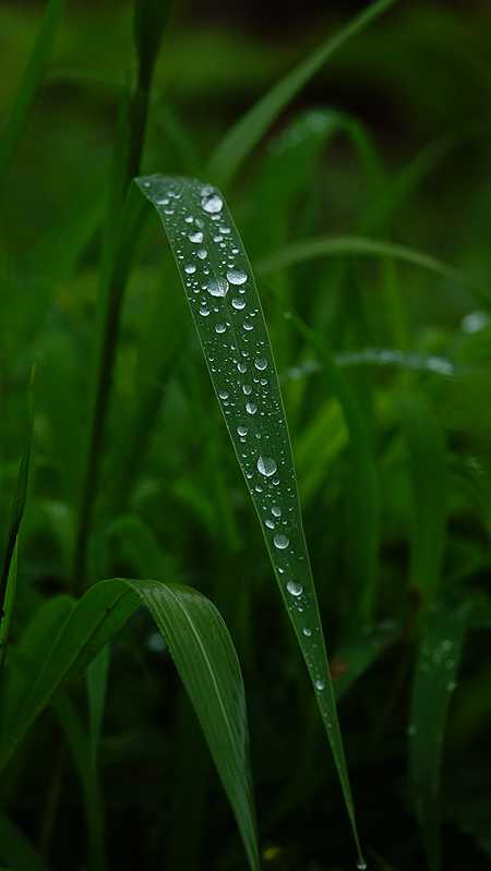 野草の葉に付いた水滴は、