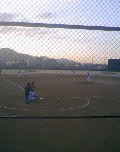 野球にとっても仕事にとっても何かと忙しいシーズンです。私にとってはほとんど仕事が無いオフシーズンです。代わりに野球が思い切り楽しめる季節でもあります。朝早くに久しぶりに携帯から日記の更新をしましたが、孫の早朝野球の応援に出かける為に早起きをしていました。相手は昨年全国大会で優勝した「菅原商会」でしたが、残念ながら2-4で逆転負けをしてしまいました。気温は0度で外野の芝生は真っ白、孫は最初から肩が痛かったようで、最終回には肩が上がらず打ち込まれてしまいましたが、次に対戦したときのリベンジを約束してくれました。姫路還暦野球