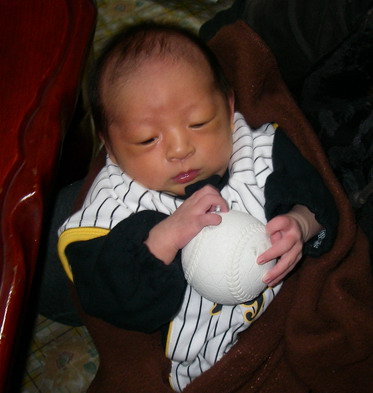 先月女の孫が生まれた。久しぶりの女の子でかわいくてたまらない毎日です。息子から孫の4人とも、5人連続の男の子だった。おかげですべての子が野球を愛し、それぞれの野球をしている。その点では男の子でよかった。しかし最近では吉田えりちゃんをはじめ、4月からは女子プロ野球も開幕する。女の子は優しいし、かわいい。その上野球が出来たらこの上ない。2月12日に生まれてから毎日といっていいほどお風呂に一緒に入っている。最近お風呂から上げる迎え(娘)が、お風呂の戸をノックすると泣き出す始末。ますますかわいい。縦じまのユニホーム(パジャマ)も良く似合う。姫路還暦野球クラブ