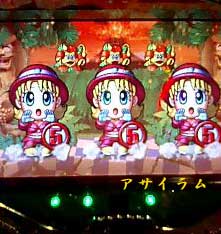 久しぶりの日記です。この間大負けしてから、エヴァは本当に打ちたくなくなりました。セカンドインパクトはいつ?ZFだけだと皆さんが言うようにつらいと思います。それでも「昔はよくかけてたなぁ」って感心するぐらい…。それでも皆さんのエヴァでのがんばってるのを見ると打ちたくなってしまいます。ということで深入りしないようにして、打ちに行きました。2/26(日)雨のち晴れ小雨の降る中、車でいつもの等価交換の店に…。入店は10:30。できるだけ出費を少なくするためにまずはおきまりの「レレレにおまかせ!!」打ち始めて気づいたことがある。上皿で玉が停滞して、時々玉を打ち出せないようになる。やめた!!って思ったところ、500円でV 7Rをゲットしてしまいました。そうそうにその台に見切りをつける。移動してもその台も同じような症状が?こんな台だっけ?って感じながらも少しずつ玉は増え、一時は4000発ぐらいまで確保。打ってるうちに、最初見られてた玉の停滞はなくなりスムーズに…。そうか!!「閉店後の掃除したあとはオイルがはがれ、滑りにくくなるんだ!」って一人で納得。隣に来たおばちゃんは、同様の症状で店員を呼び出してます。しかも5回も…。「いいかげんあきらめたら?ずーっと打ってるとよくなるよ!!」って言おうかとも思ったけど、めんどくさい。玉も減ってきたので2500発確保してエヴァに…。10000円分のたまを持ち歩くのがめんどくさいので貯玉にして、カードで持ち歩く。エヴァの端の台に座る。回りが悪い。10000円分と4000円打ってヤメ。「アスカ、来日」を一回見ただけ!!タイトル予告はこの頃すべてシンクロに行くんだなぁ…まだ13:00。こそこそとパチスロコーナーへ。巨人の星3がありました。全くわからない台。あいてる台はみんな150ゲームほどでやめている。「この辺までがポイントかぁ?」って勝手に想像。その中から180G回ってるやつに座る。確か「前機種はリプレイ3回で特訓抽選、4回でボーナス確定?」ってうる覚えな記憶を頼りに打ち出す。1000円でいきなり特訓モード突入し、ボーナスゲット!!特訓潜伏?その後も100G程でボーナスを繰り返す。しかしレギュラーばっか、BIGがほとんどこないので増えない。結局11回かけてビッグ4回。300G越えたところでやめました。換えたら1330枚、26500円分。これで約20000円プラスカードの残り5000円分が浮き!!でも、やっぱりエヴァが打ちたくなる。カードの残りを使おう!!と思ってエヴァを打つ。「レイ、心の中に」とタイトル予告が3000円目ぐらいにくるもシンクロへはずれ。全部カードの使い切って、まだ勝っているためも、やらなくてもいいのに10000円追加。しかしぱっとしないので5000円分打ってやめ。その後もう帰ろうか?って悩みながらもカードの残りを打って帰ろ!!ってウルトラマン・セブンに3000円。その後ろのCR笑うセールスマンPSFβに何となく座る。確率は1/467確率突入率80%と…。エヴァと同じようなもんか…。1500円でなんか知らないけど、4でかかる。すると7Rで終わりました????その後で「坊主めくりモード?」スタート??店員はあたらしい箱を持ってきました。なんで?「箱はスカスカだし、通常絵柄で時短なだけじゃん??」って思ってました。近くの人に聞いたら「青字は大当たりで7R、赤字は超大当たりで15Rなんやで!!」「大当たり後は坊主めくりモードで確変やでー!」って…。ところが、回してるうちに急に鷹の巣モードに移行。これが確変終了の合図らしい。時短100回やって終わり。へっ??って感じ。せっかく何十万円ぶりに確変引いたのに、たかだか800個ぐらい??泣きそうでした。まだ勝ってるし、もうやけになって残り玉打ってたら、突然鷹の巣モードに移行して、リーチがかかり再び大当たり!!今度はゲーム性もわかってるし、余裕で打ってる。8回かかりました。超大当たりは4回後は大当たり。思ったより出玉は少ない…。9600個まぁこれで久方ぶりに勝ったのでよしとしましょう!!約45000円勝ち!!携帯もービーに挑戦!!CR笑うセールスマンPSFβの一場面です!!