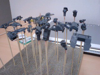 お久しぶりです。2/16ガンプラ制作をしていますが、なかなか進みません。仮組を終えて、ベースを塗る段階にきました。現在再びバラバラ状態。内部パーツを、金属みたいにしたいので、それだけを竹串にさして塗装の準備中。竹串を刺しているのは、ネコの爪研ぎようの段ボール(?)3本で480円。。一本を半分に割ってつかってます。あとはどのようにして塗装していくか。。。ベースグレーを缶スプレーで塗ろうと思ってましたが、この後、細かいところも塗るし、、、これからも少しずつでもプラモをつくろうかと・・・・。子供が大きくなったら一緒に作ることもあるだろうし・・・ってことで”エアブラシ”に手を出してしまいました。。ネットで買いましたが、商品到着は2週間ぐらいかかるそうです。それまでは、MG νガンダムは一時お預けです。 エアブラシはGSI(旧グンゼ) クレオス ダブルアクションがよいと思ってましたが・・・ついでにコンプレッサー、レギュレーターも思い切って購入しようと・・・。ということで「クレオス Mr.リニアコンプレッサーL5/プラチナ/レギュレータセット PS305」ネットであちこち探したけど、セットで約31000円が最安値!!(定価は5万円以上)この前のエヴァでの価値分で買えてしまいました。。早く来ないかなぁ・・・・・。というより、ちゃんと使いこなせるんだろうか・・・ ということで、ちょっと道草して、SD νガンダムを作成。。これは小さいので筆塗りでやろうかな?と・・・仮組終了。。。継ぎ目も消しています。。。後は色を塗っていくだけ。。。あくまでも筆塗りで・・・シャア専用機みたいに赤にしてみようかな?