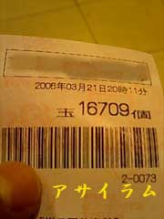 3/16(木)雨今日は仕事が遅くなって、いつもの店には行けないので「パチはやめておこう」って思ってました。しかし、帰り道ちょっと気になってたホールに入ってしまいました。繁華街にある「○○○YO」ってとこです。まずぐるっと一回り。エヴァは旧台のSFがありました。盤面が汚くて打つ気が起こりませんでした。それにしてもこの店の台、みんな汚い!!最近のホールには珍しく、汚れている…。どうしようかな?って思ってると、ある一台に目がとまりました。アルゼの台CR シンドバッドアドベンチャーパチスロでおせわになった「榎本加奈子シンドバッドアドベンチャー」のCRパチンコ。盤面のほとんどが液晶になっていて、そのため釘が透明の盤の上に打ち込まれてて、浮いている感じ。気持ち悪い。とりあえず打ってみる。2000円でかかってしまった。リーチ予告アクションは「えのかな」の小役予告ととおんなじようなので予告してくれます。スペックは大当たり確率1/359.5 確変確率60%。案の定単発でした。その後時短中は1回もリーチが来なくて終了。出球が少ないと感じてましたが、なんと8カウントでした。その後流しておしまいかと思ってたら、残り1/3ほどで待望の確変!ゲット!!ワンセットでした。この後の時短中にリーチかからず。時短後即逃げ。出玉は4609個果たして換金率は??換金額は??10700円!!!!! なんとこのご時世 43玉100円の換金率!!ありえない…。二度といかない!!!!!!本日2000円投資 回収10700円 total 8700円勝ち!!