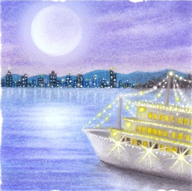 「月明かりのクルーズ」ご挨拶が遅くなりましたが、明けましておめでとうございます!今年もどうぞよろしくお願い致します。年末、年始と色々忙しく過ごしていましたがやっと落ち着いてきたので、今年最初のパステル描きました♪この作品のイメージは、神戸港を遊覧するコンチェルトという大きな遊覧船でのナイトクルーズです。コンチェルトは、神戸港から明石海峡大橋の手前までぐる~っと遊覧する観光船で、ナイトクルーズの時間になると豪華にライトアップして、神戸の夜景もキラキラと見え、とてもロマンティックなのです中ではディナーができたり楽器の生演奏があったり、特別な日にぴったりクルージングですバレンタインも近いので、デートにもおすすめで~すまっ、私は昼しか乗ったことないんですけどねぇ~ブログランキングに参加しています。今年もよろしくお願い致しますにほんブログ村