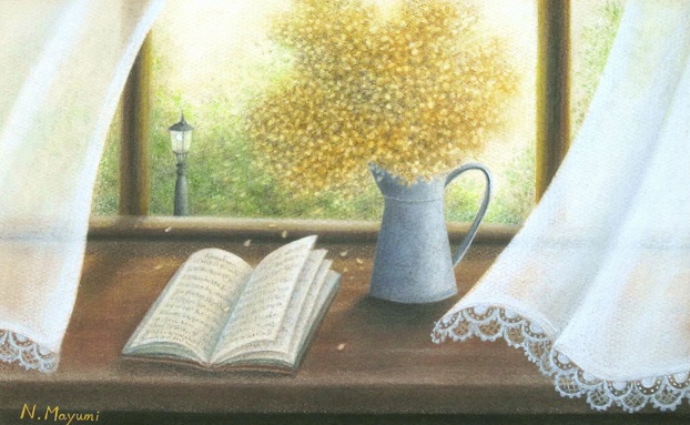 「秋風吹く窓辺」夕方になるとすっかり秋空ですね。高く澄んだ空の青、はかなく切ないですがとても美しいですね。夏の終わりから秋にかけての、透き通った濃い青空と夕方の少し冷たい風は、心にじんわりと懐かしいような優しい印象を残してくれる気がします。「秋風吹く窓辺」は、その少し前の柔らかい西日の当たる時間帯を描きました。あじさいのドライフラワー、一度描いてみたかったので仕上がって嬉しいです♪枯れた感じをパステルで描くのも楽しかったですさて、10月パステルアート教室の日程のお知らせです☆〇自宅教室《Atelier de couleurs 自宅教室》 10月 2日(木) 満席になりましたm(_ _)m 11日(土)残り2席です。 18日(土)残り2席です。 29日(水) 満席になりましたm(_ _)m時間 10時~12時半ごろ料金 1500円教室場所 神戸市西区(西神南)詳しくはご予約時にメールでお知らせします参加ご希望の方は↓までご予約お待ちしていますffckx850@ybb.ne.jp〇カルチャー教室《PKCパステルアート三宮教室》※詳細UPされています! 10月 8日(水) 22日(水)時間 10時~12時月料金 月1回コース 2000円(材料費別途200円) 月2回コース 4000円(材料費別途400円) 単発のご参加 2300円(材料費別途200円)〇コースの方は偶数月にカルチャー会費(教室維持費)540円かかります。〇単発の方は、奇数回目の教室でカルチャー会費540円かかります。〇入会金はありません。☆PKCパステルアート三宮教室のご見学は無料です(ご予約は必要になります)詳しくはPKCさんのHPをご覧ください参加ご希望の方は永田のメール→ffckx850@ybb.ne.jp又はPKCさんへお電話(078-325-3655)でご予約お待ちしていますブログランキングに参加しています。パステルバナーになりましたクリックして頂けると嬉しいですにほんブログ村