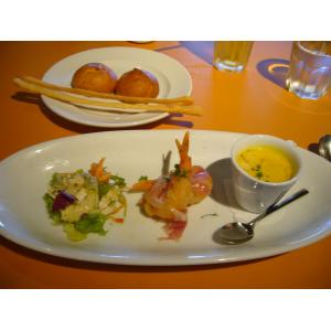 昨日は主人のお仕事にお付き合いし御殿場まで行ってきました お昼前に目的地に着き、ちゃちゃっとお仕事を片付けてランチへ 付き合ってくれたお礼にと主人がごちそうしてくれることに ちょうど近くにイタリアンのステキなお店があったのでそちらで私はお魚の、主人はお肉のランチコースをいただきました まずは前菜盛り合わせ 左から チキンのサラダ えびのフリッターみたいなやつの生ハム巻き 南瓜のポタージュ サラダはドレッシングがとっても美味しかった~♪ えびもぷりっぷりで生ハムと合うのね~ ポタージュは上品なお味でした 続いてパスタ スミマセン。。あまりにも美味しそうで写真を撮る前にがっついてしまいました チキンと長葱のトマトソースのパスタです♪ トマトソースなんだけど長葱が入っているせいかほんのり和風な感じもするパスタで美味しかったです ちなみに主人はボンゴレでした♪続いて私はお魚料理 お魚は真鯛♪皮がパリッパリで実はプリップリ ソースがこれまた美味しい普段は肉派の私ですがこの日はお魚の気分。。。年取ったのかしら?(笑) ちなみに主人はお肉でした♪ おいしそぉ~。 次はお肉にするかな。。。 そしてデザート盛り合わせちゃってます 私の影が映ってますね。。。(* ̄m ̄)プッ実はこれまた真ん中のシャーベットをほとんど食べつくしてから写真を撮り忘れたことに気付き。。。 主人のを借りて写真を撮りました(笑) 撮った後はちゃんと返しましたよ~ 久しぶりに主人とゆっくりランチをいただくことができました感謝です 来月は結婚記念日があるのでまたどこか行けたらいいな~